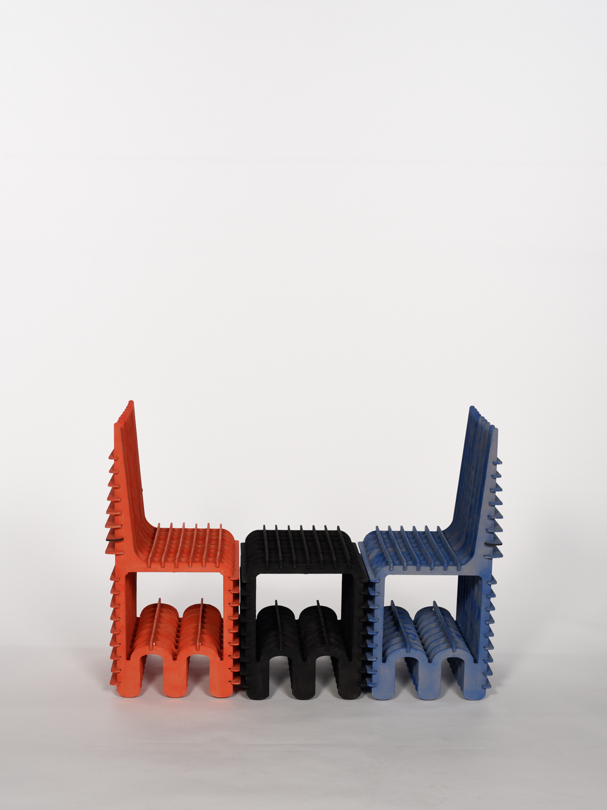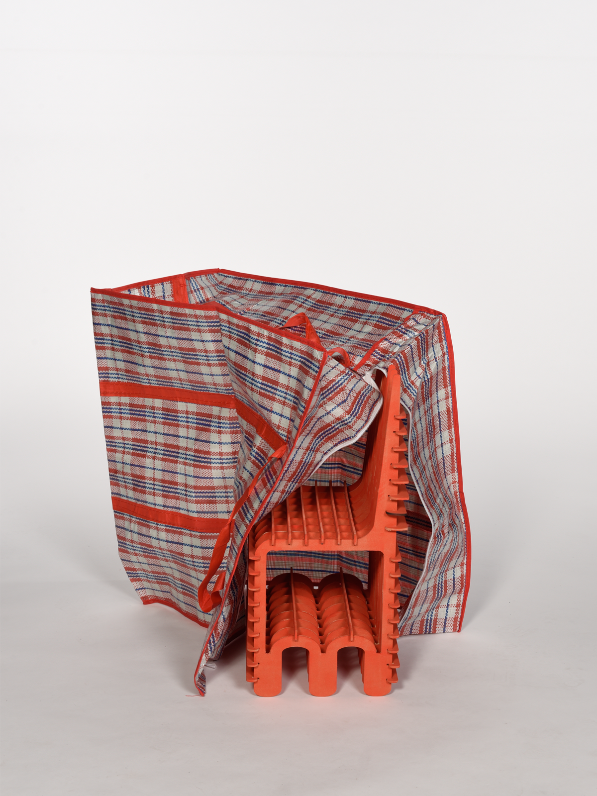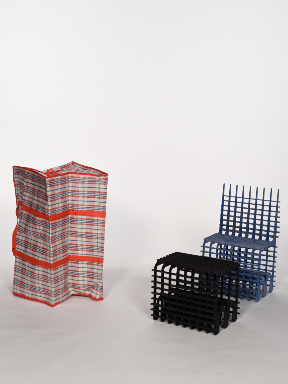 Seating concepts live in these plastic mesh bags as a reminder of the travellers whole migrate to the city for better life and work in South Africa. When the seats are exposed they can create different seating arrangements allowing for customisation for a users specific needs and taste. Just like how these same bags hold different contents from a persons' home, the same can be said for different seating variations of home symbolics.